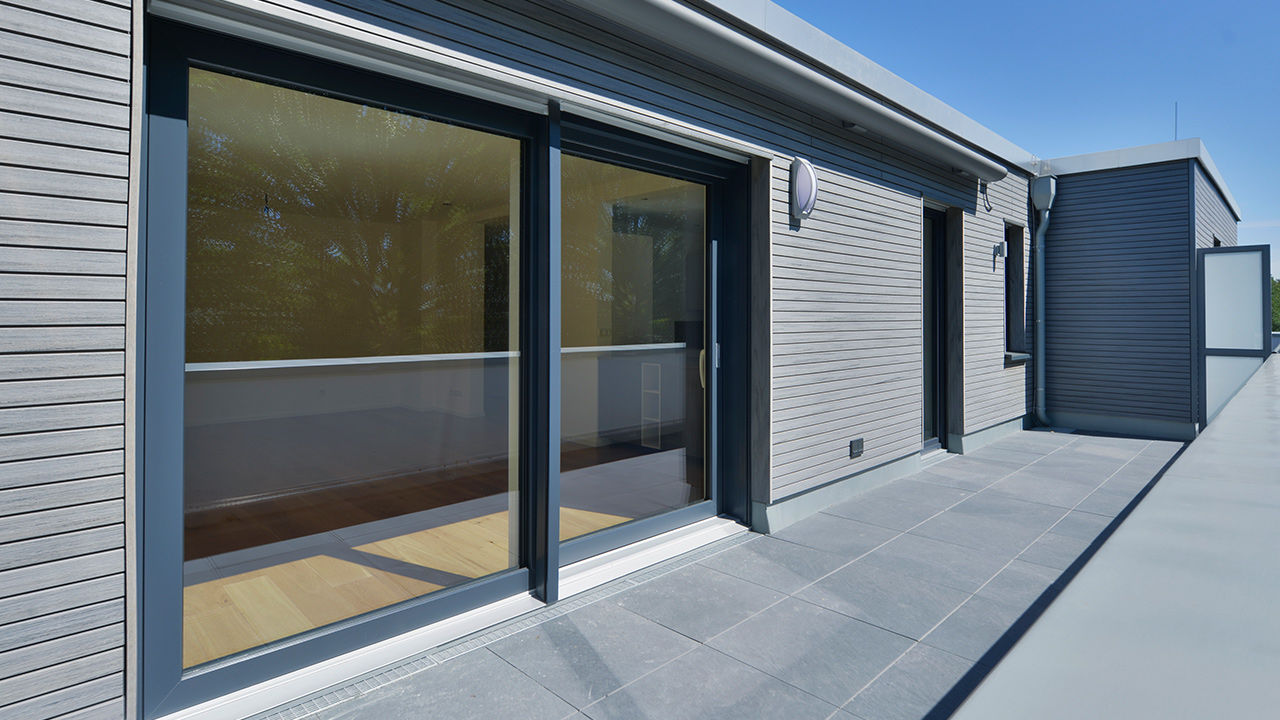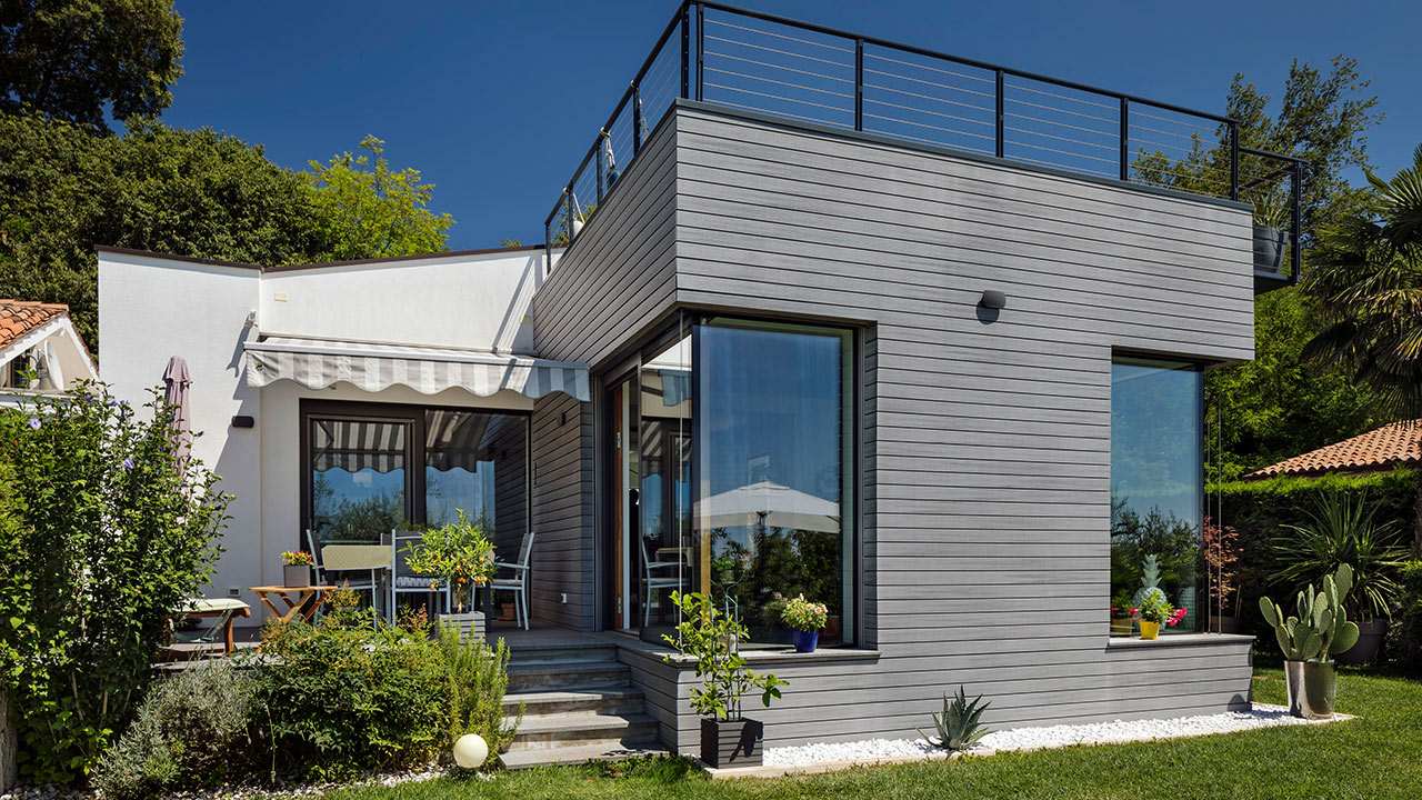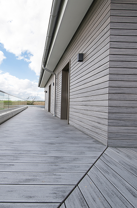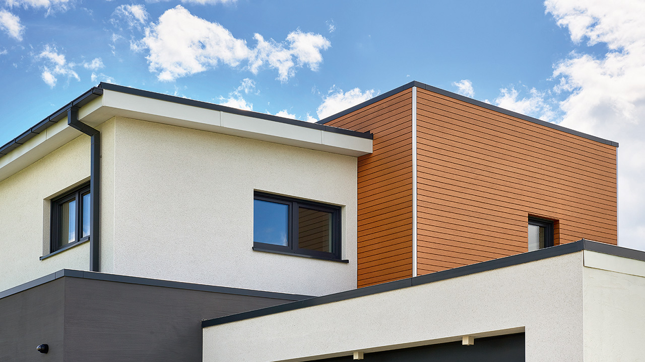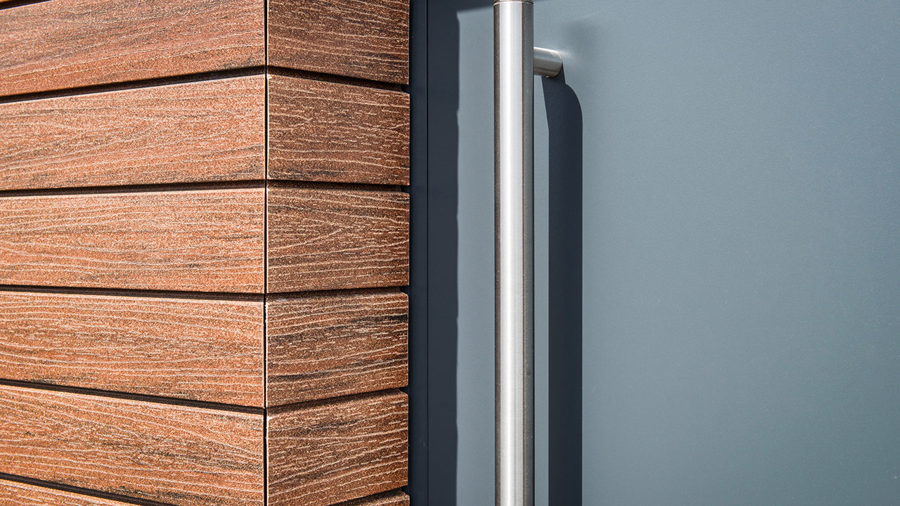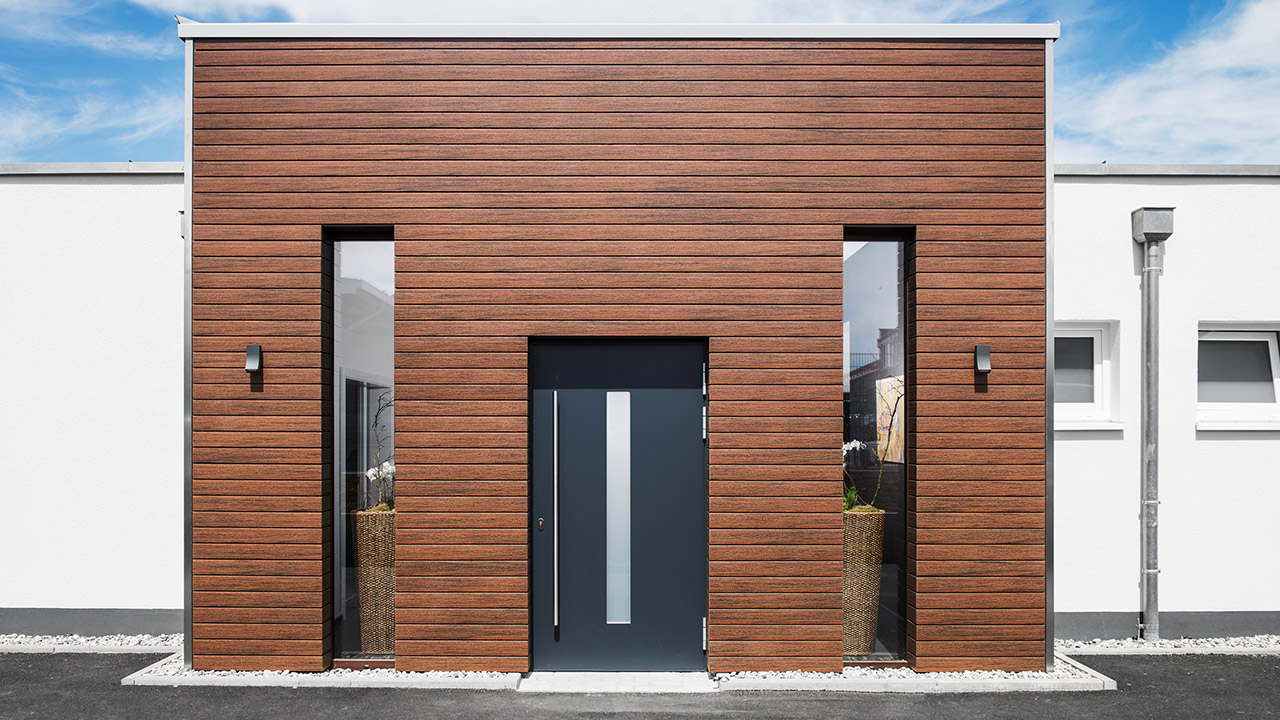 Die Gestaltende ist in zwei Oberflächenvarianten erhältlich, die sich gezielt an unterschiedliche Gestaltungsansprüche richten. Die Ausführung Standard mit gebürsteter Holzmaserung eignet sich hervorragend für Gebäude, die eine warme, naturnahe Ausstrahlung haben sollen - von der Einfamilienhaussanierung bis zum modernen Landhaus. Die Variante Exklusiv mit geprägter Linienstruktur und matter Oberfläche spricht all jene an, die auf eine klare, reduzierte Formensprache setzen - zeitgemäß, sachlich und architektonisch anspruchsvoll. Beide Varianten sind in drei Profilbreiten (small, XL, XXL) und waagerecht wie senkrecht verlegbar, was eine große gestalterische Bandbreite eröffnet.