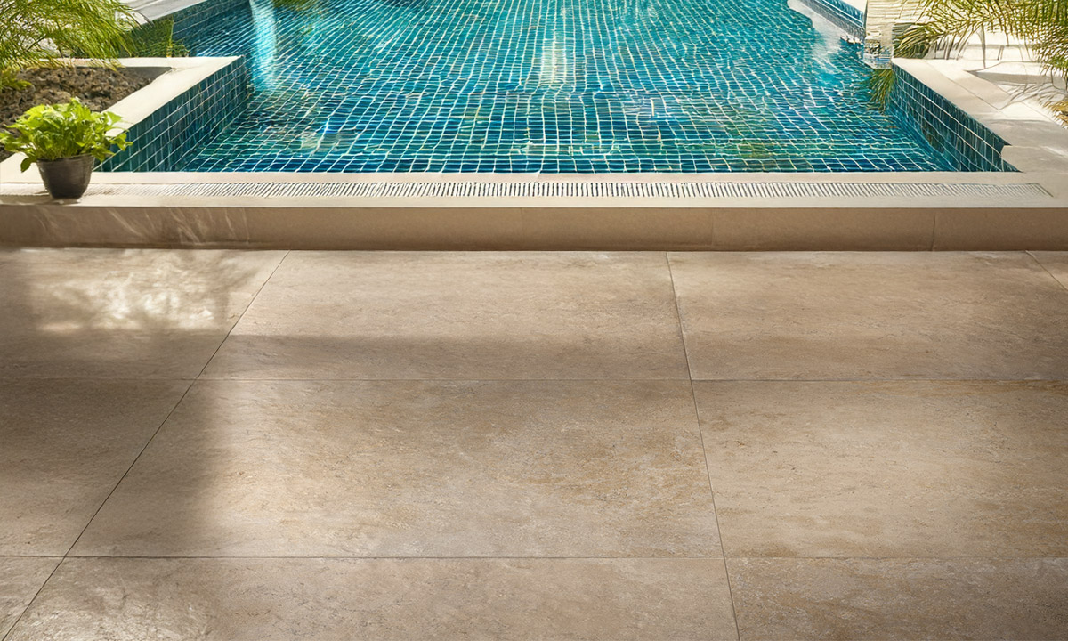 Farbton Aurora - Eleganz in Vintage-Optik. Mit dem Farbton Aurora entfaltet die Kollektion ihre volle Wirkung: Dezente Schattierungen, natürliche Nuancen und eine ruhige Ausstrahlung schaffen ein harmonisches Gesamtbild mit einem Hauch Vintage-Charme. Im großzügigen Format von 60 x 90 cm kommt die Struktur besonders gut zur Geltung. Die geprüfte Rutschfestigkeit R11-C garantiert Trittsicherheit - perfekt für Terrassen, Gartenwege oder Poolumrandungen. Ergänzt wird die Serie durch passgenaue Formteile für individuelle Gestaltungen, die sich nahtlos in jedes Außenkonzept einfügen - hochwertig, stimmig und stilvoll.